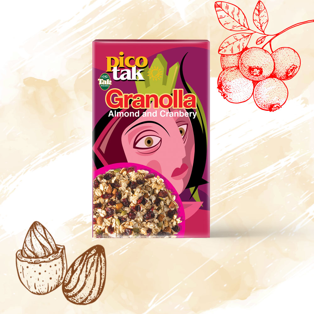 Ingredients: rolled oat, barley, almonds, pumpkin seeds, dried dates, dried coconut slices, cranberries, sesame, chia seeds, honey, vegetable oil (sesame, palm olein), vanilla, salt.